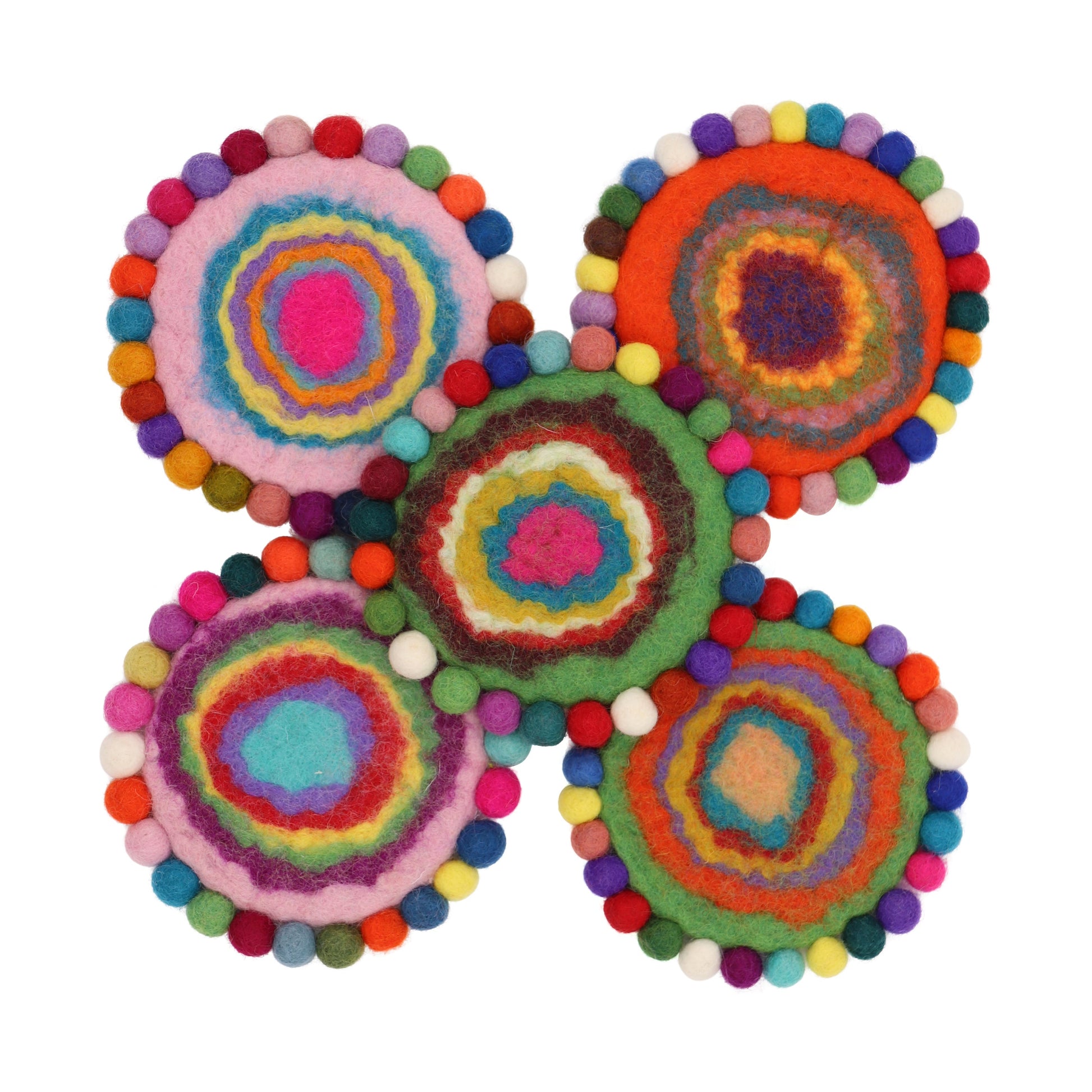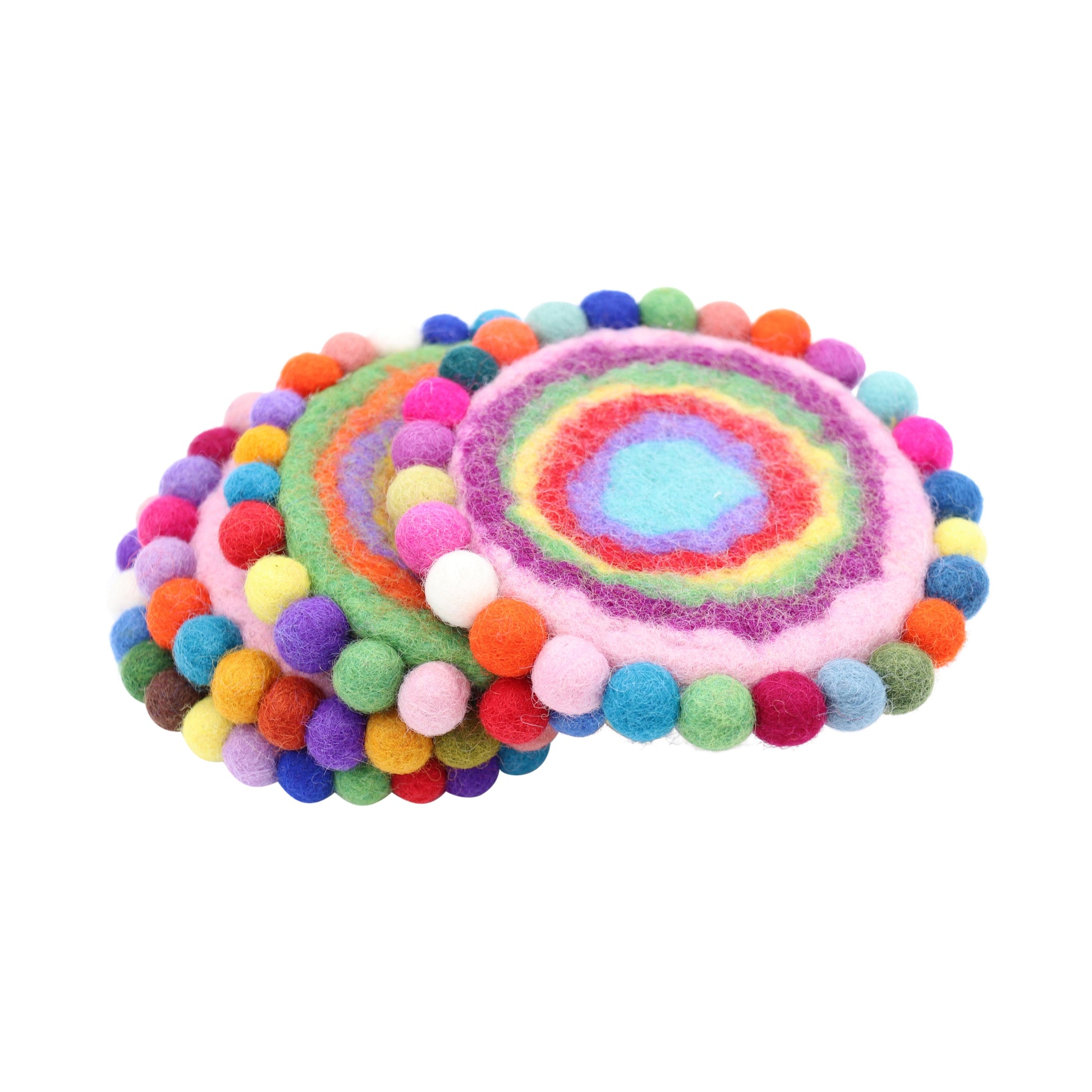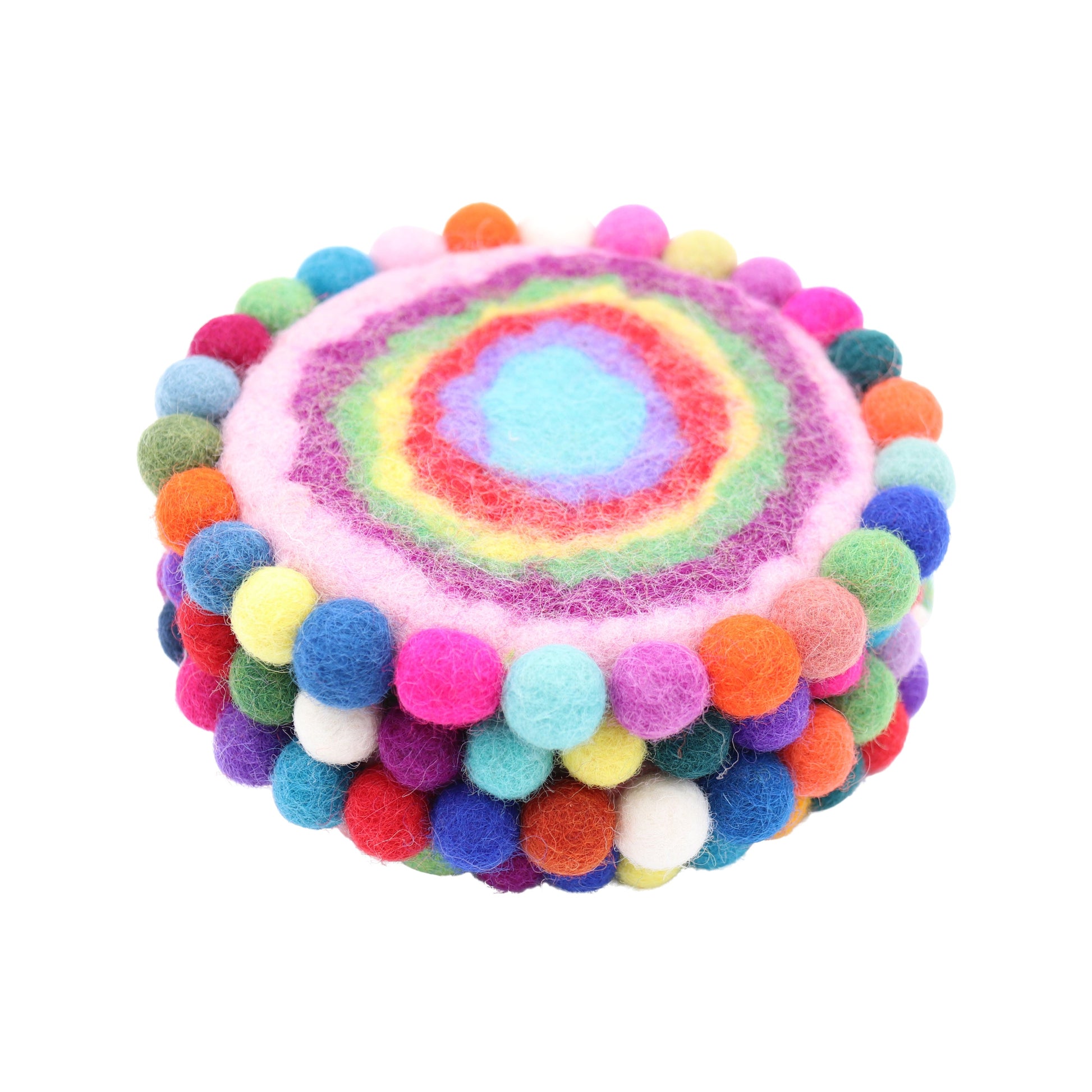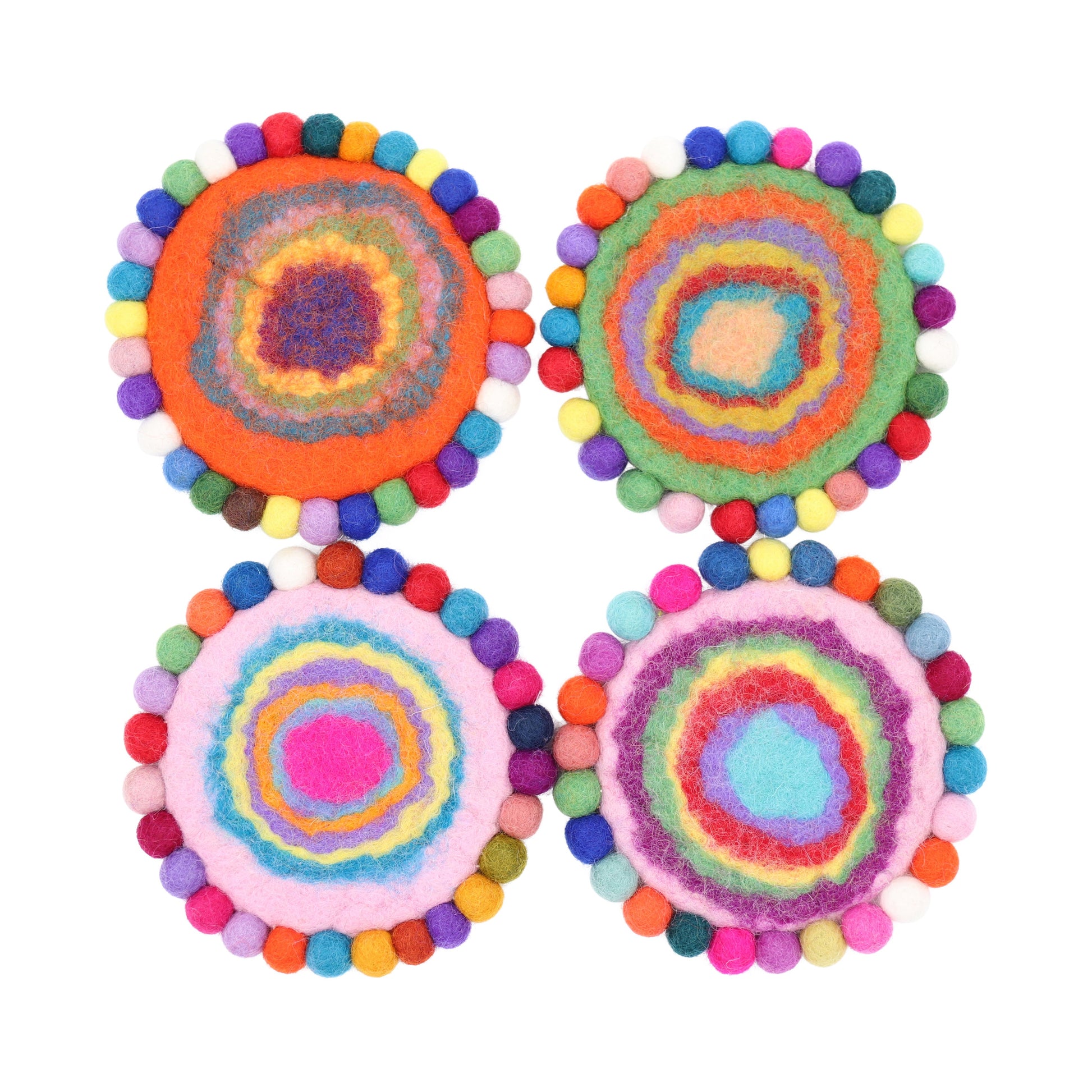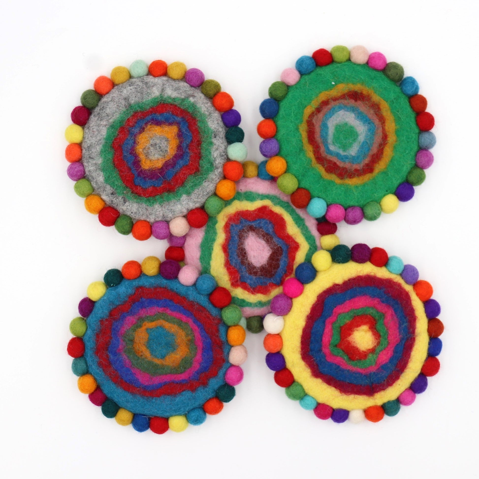 Handmade in Nepal, each of our high-quality coasters are uniquely crafted with a cute design perfect to display on your coffee table! These adorable wool felt coasters absorb drips, spills, and condensation to protect your furniture, tabletops, and countertops.