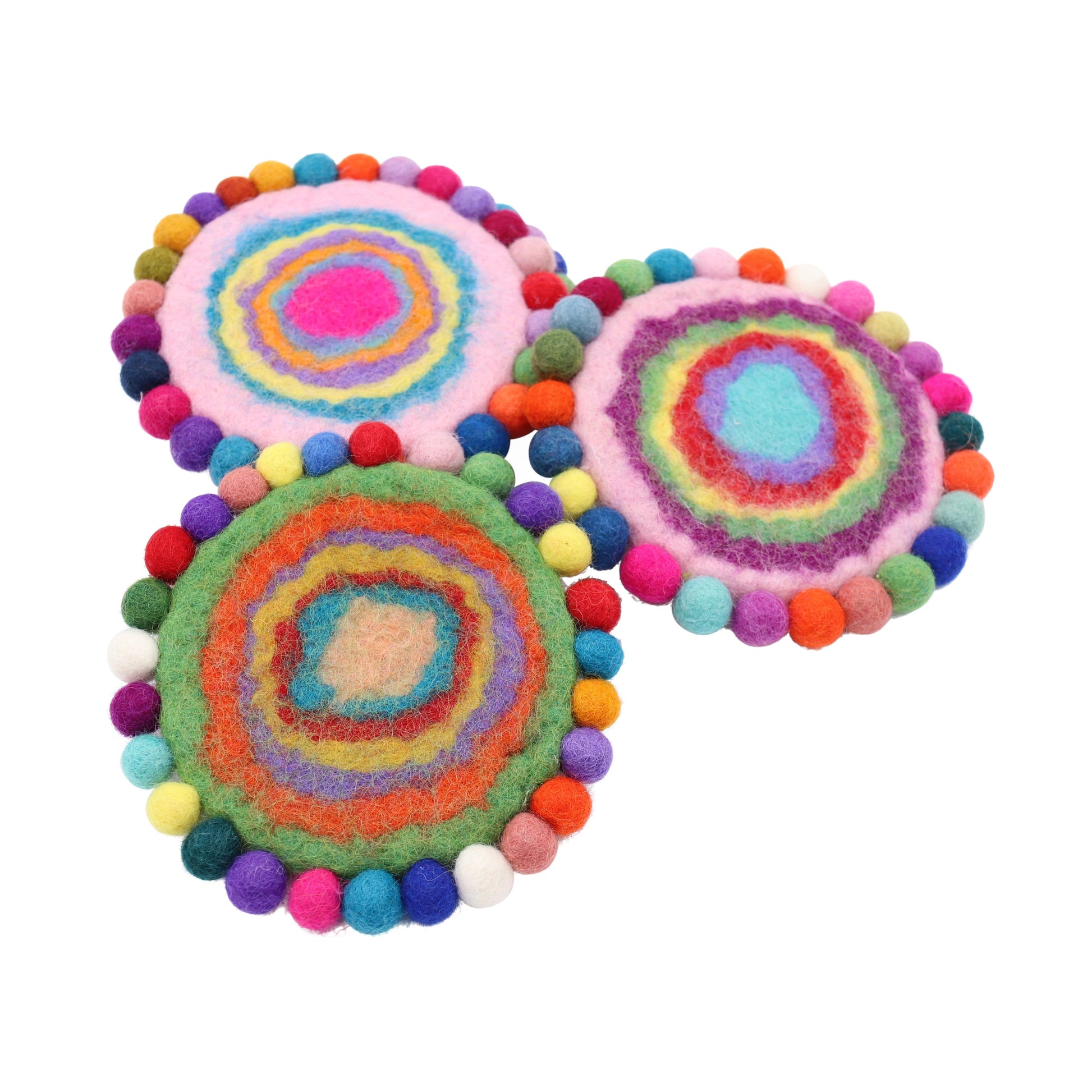 - Handcrafted wool felt coasters are soft, light, and better at absorbing liquids than cork or stone coasters.