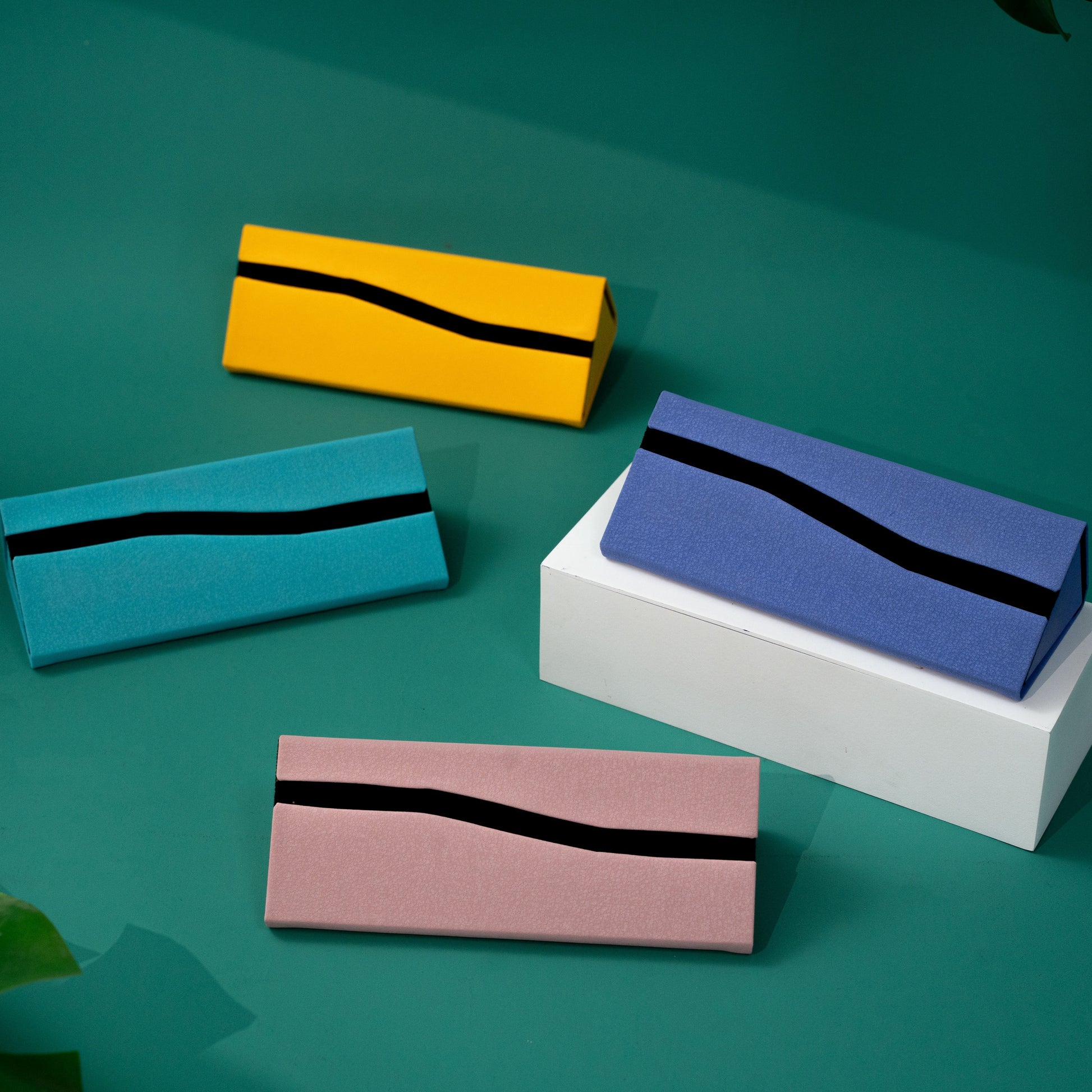 Retro Glasses Case - Hard Shell, Fold-Flat Colorful Vegan Leather Case
