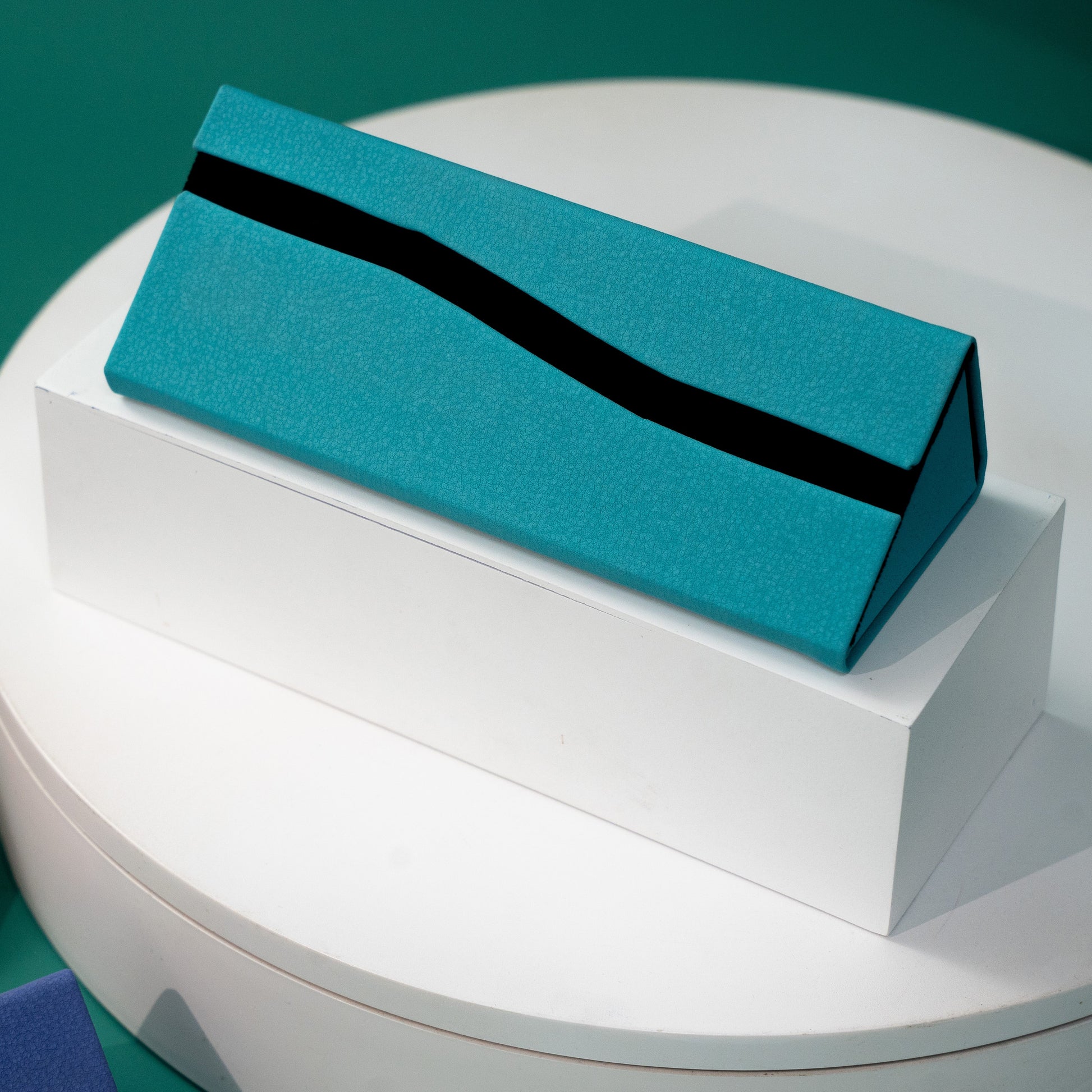 This folding, magnetic hard leather glasses case is the perfect companion to your eye wear. Smart, compact design uses a magnetic latch to form a firm but easy-to-open seal. When not in use, this case folds up flat to be stored easily in a bag, pocket or compartment. The design is printed on leather and attached to a Iron core, making this a lightweight case with a premium feel. Fits eyeglasses and sunglasses of most sizes.