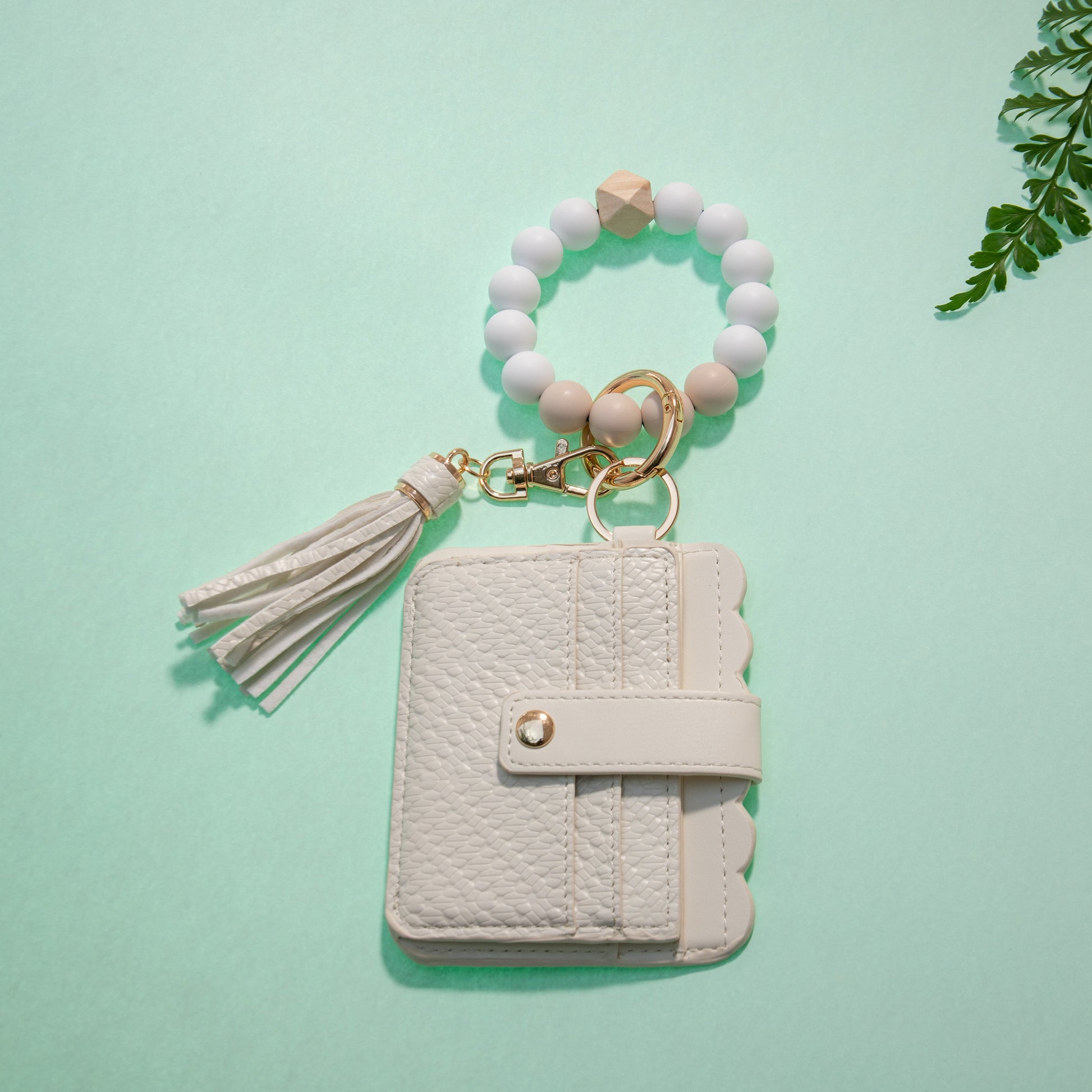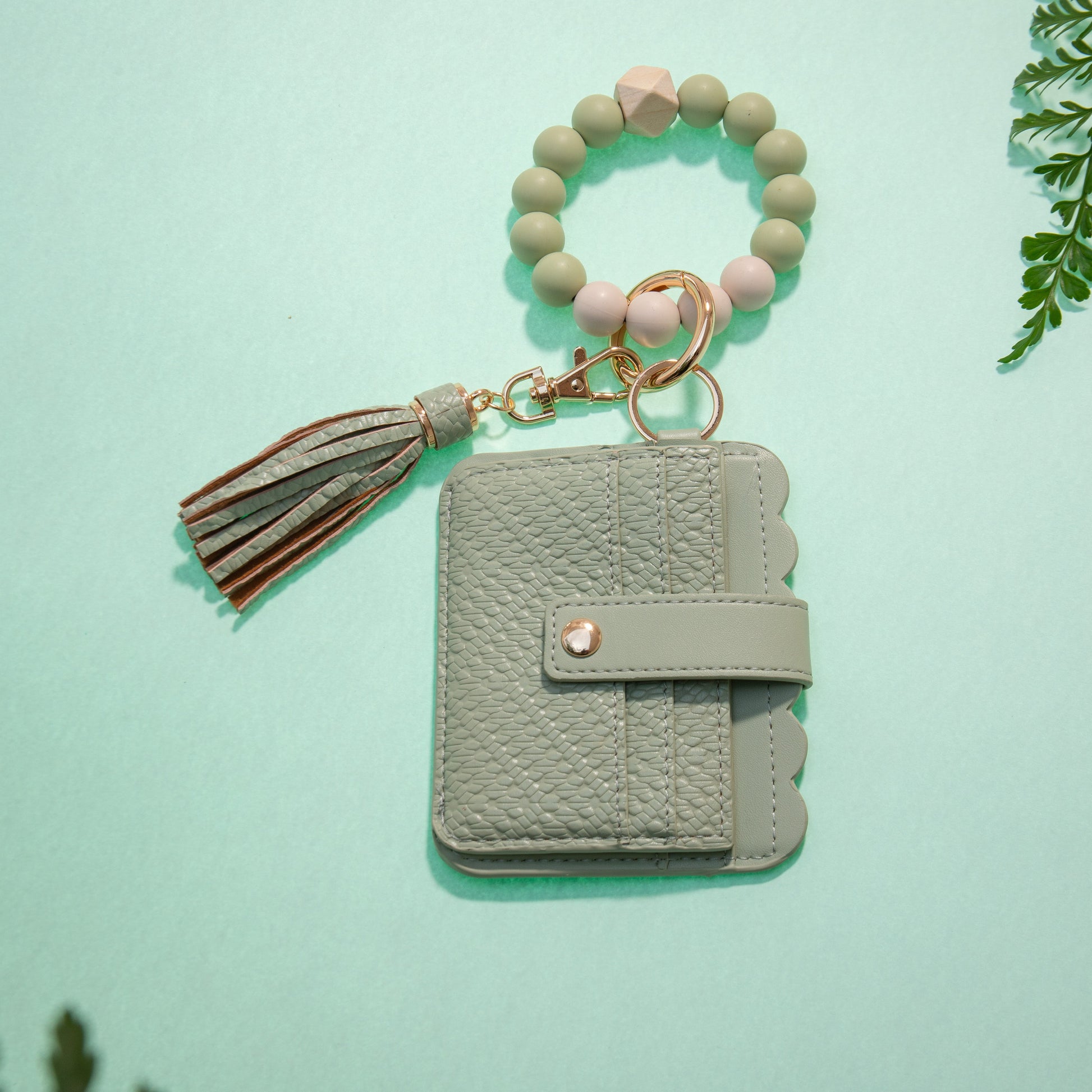 - Material: Vegan leather, silicone, wood bead