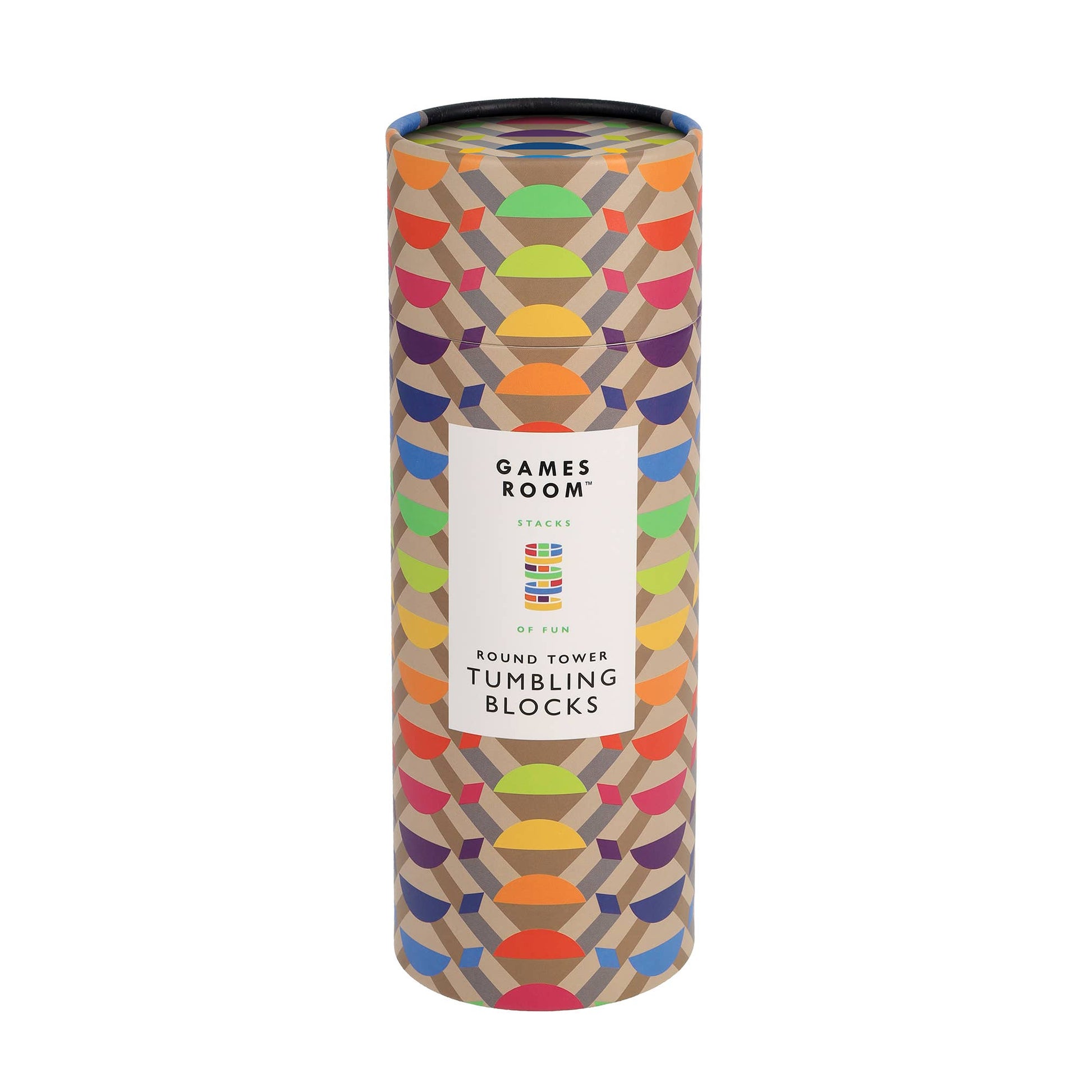 TIMELESS GAME WITH A NEW TWIST: A beautifully designed update to this classic game, this bright box is filled with 54 wooden blocks in two different shapes (rectangular and semi-circular) that build a circular tower. Looks as good displayed on a shelf as it does on your table!