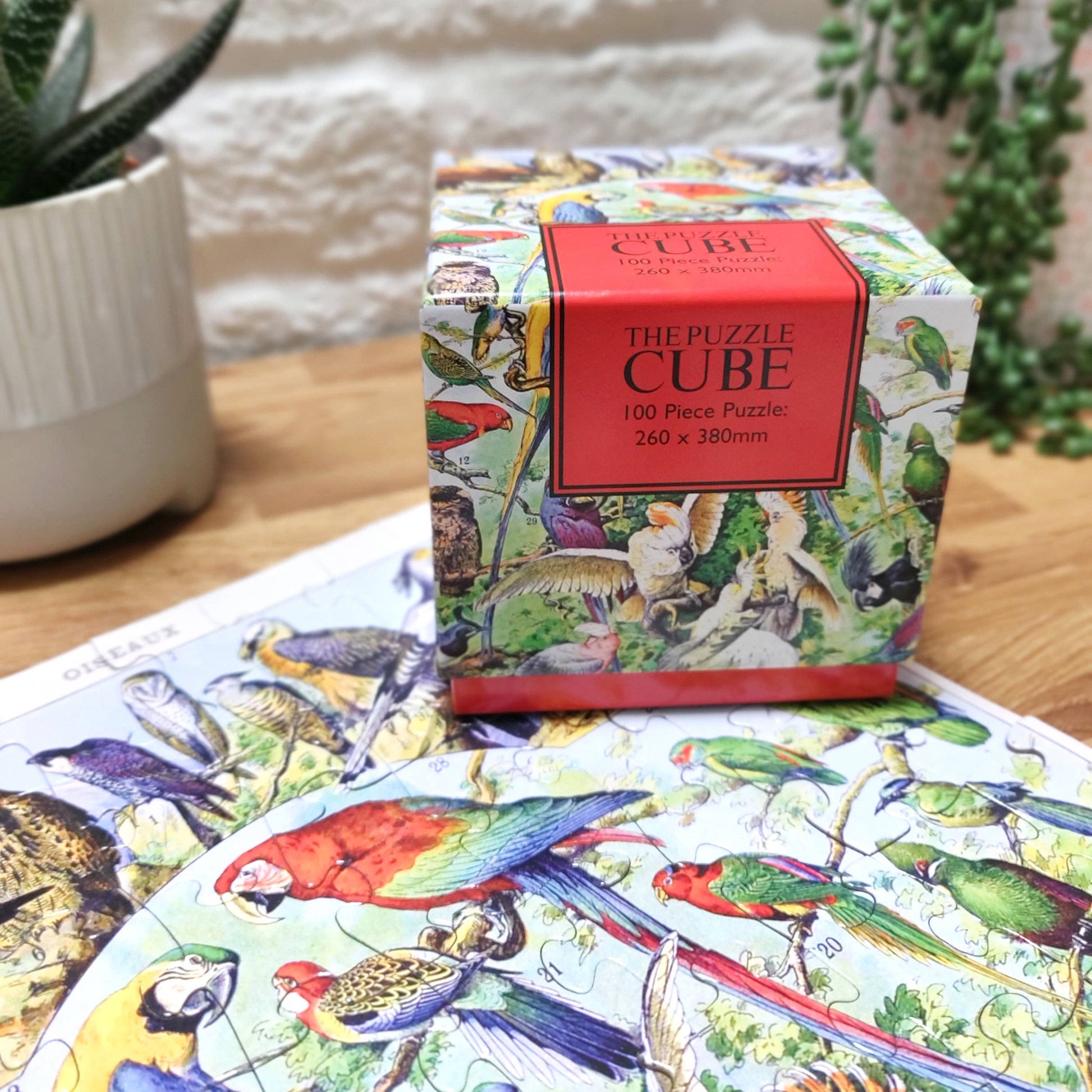 100 piece jigsaw in Tropical Birds design. The jigsaw puzzle is presented in a detailed cube box.