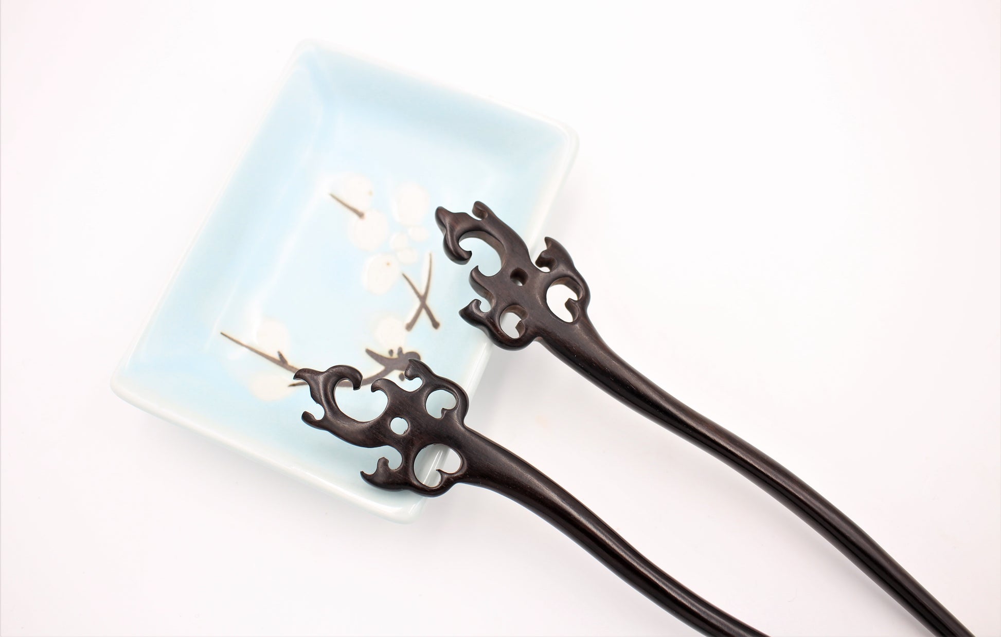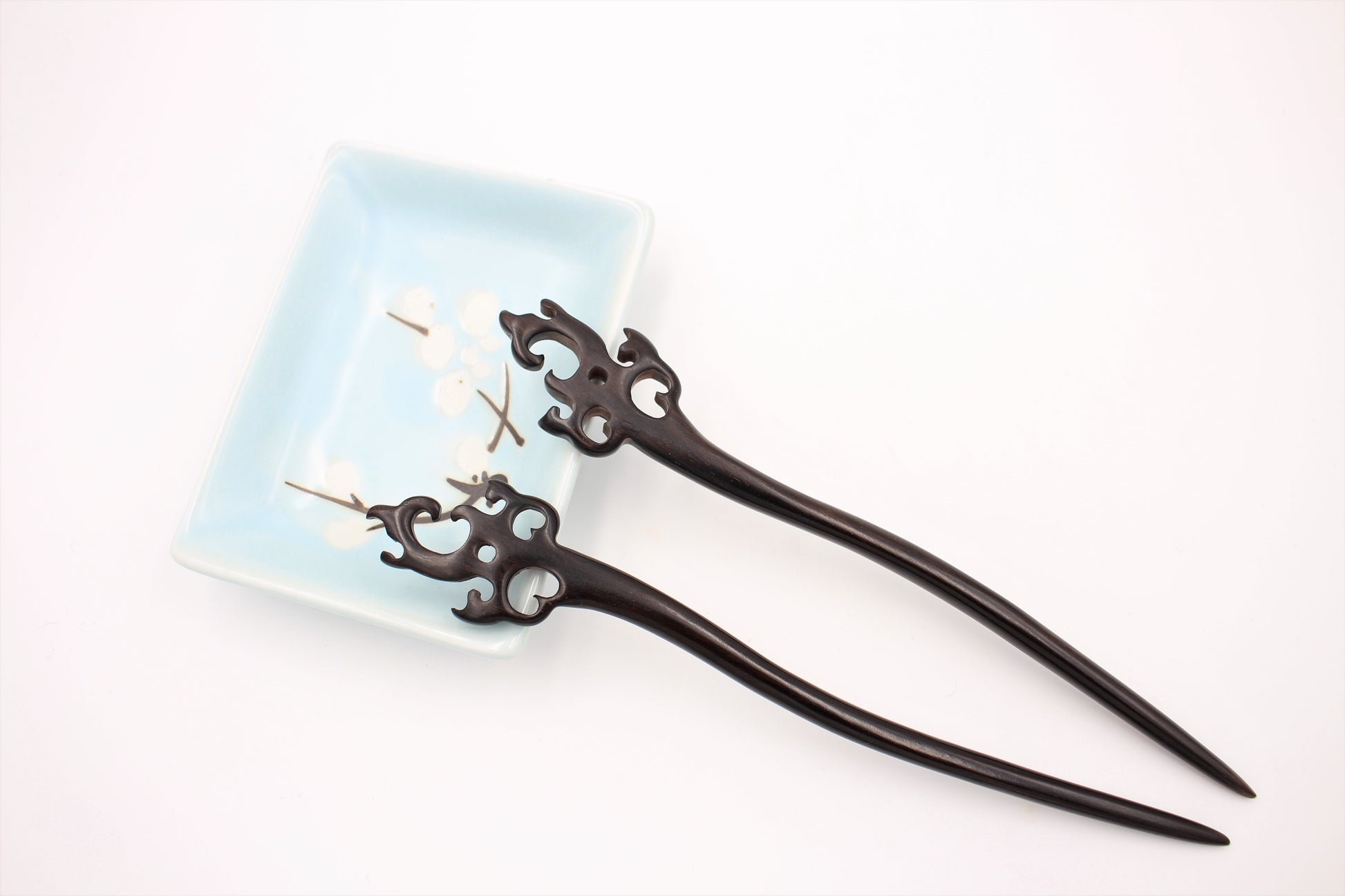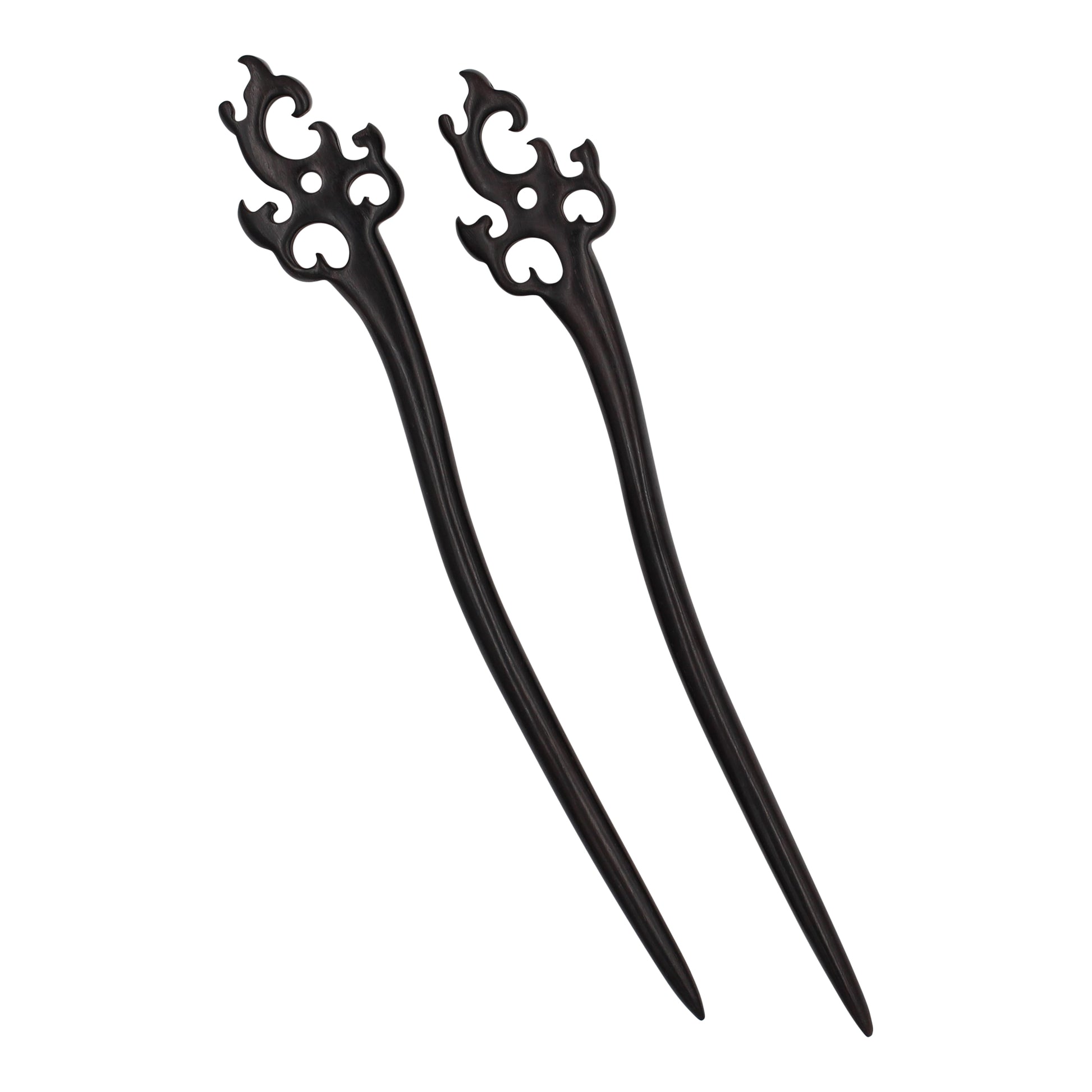 The hair sticks are inspired by a traditional hairstyle older than written history that can be traced back to over 4000 years in the Shang Dynasty. In ancient times both men and women like to use hair sticks. We selected sustainable, solid black sandalwood and red sandalwood for an ethical product that has a natural, boho aesthetic. The surface is polished, easily inserted into the hair. The subject of the carving is elegantly designed, convenient, and easy to use, like a work of art, adding a unique temperament to your hair. However, when used properly a single hair stick can secure hair for the entire day. For thinner hair or a more secure all-day hold, two sticks can be used.