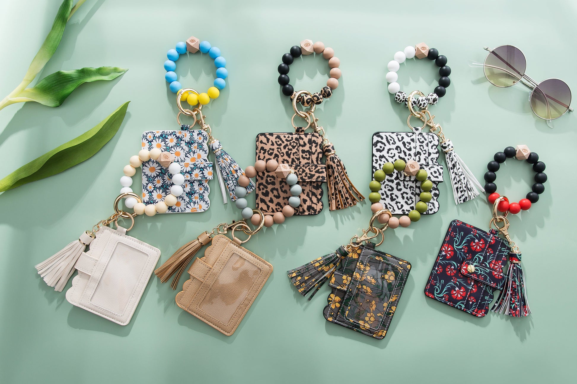 "Okay, time to go. I have a diaper bag, my purse, and most importantly, baby! But what about my keys? They're on my wrist! With my cool beaded bracelet wristband keychain, I will never lose my keys"