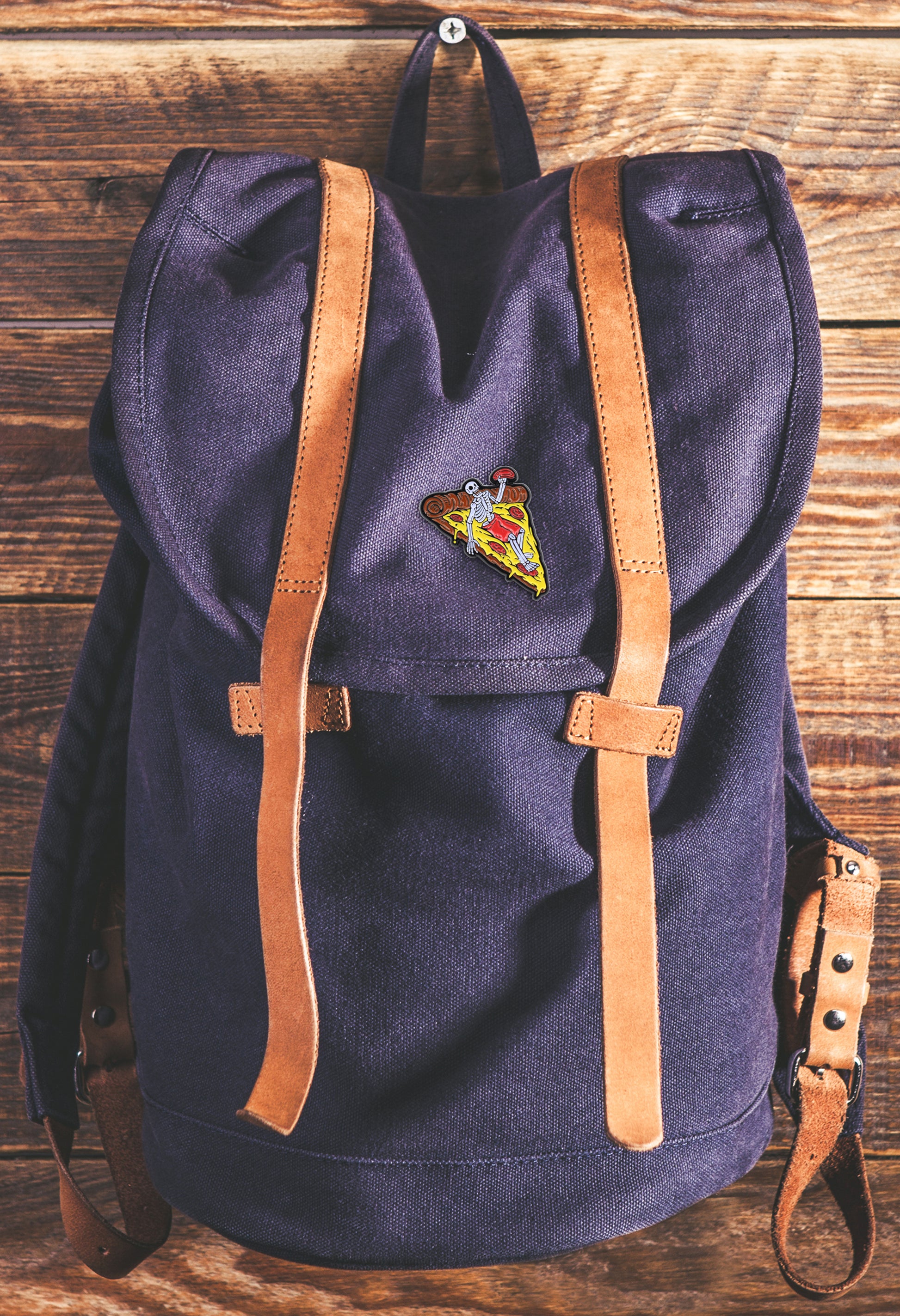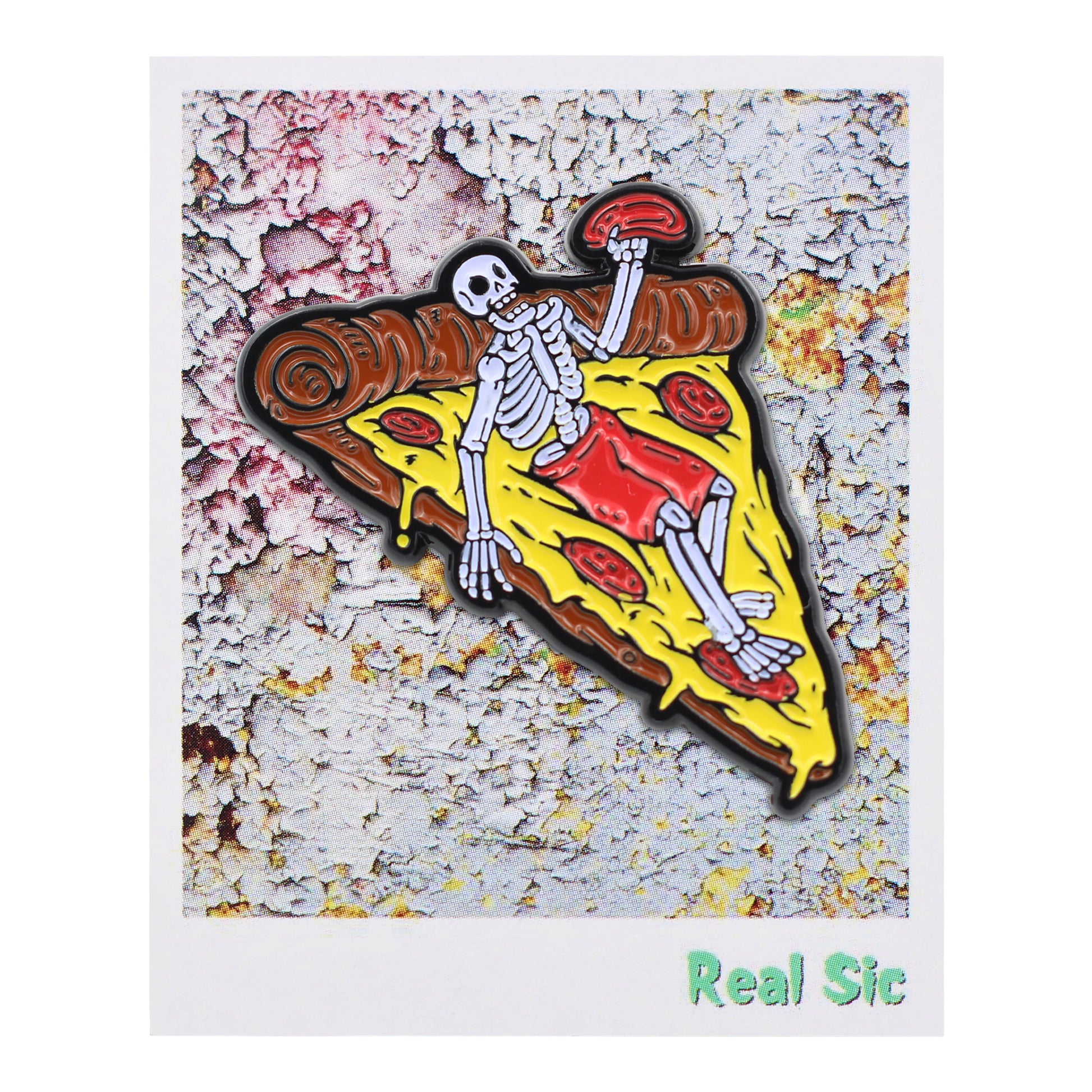 There’s no better feeling in the world than a warm pizza box on your lap. Express your love for the za with this skeleton pizza pin.