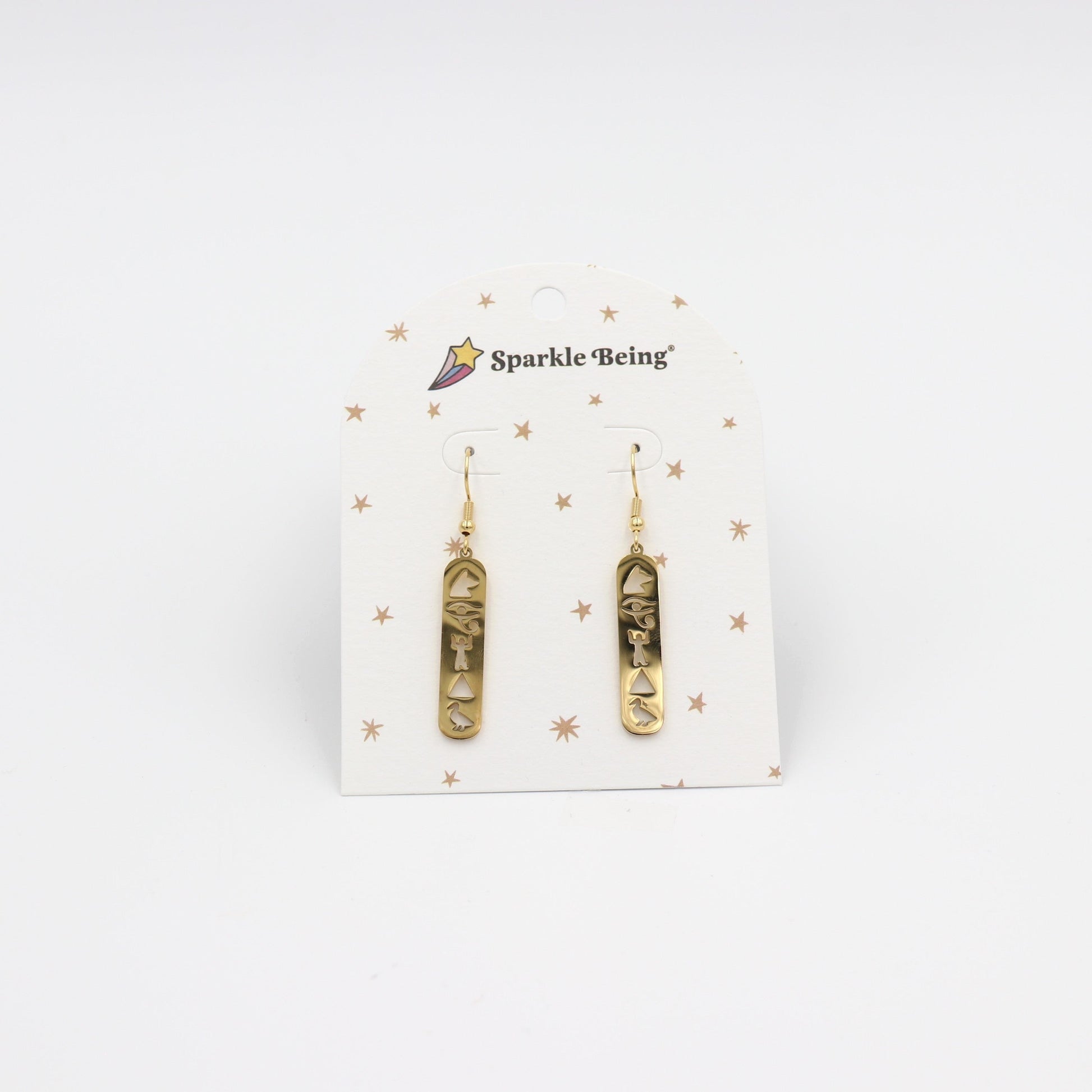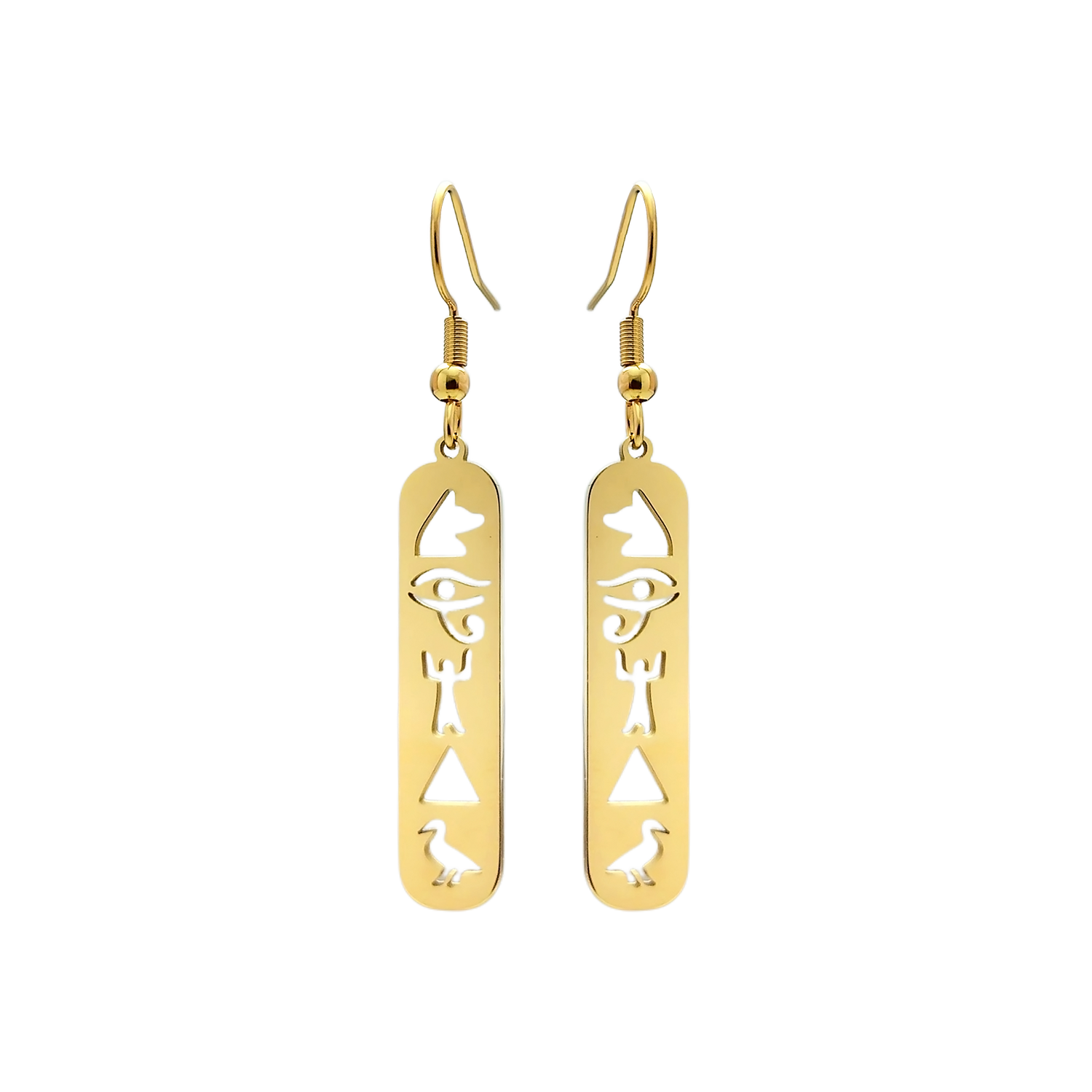 Invoke the wisdom and protection of the ancients with these stunning Egyptian hieroglyphic earrings, featuring the iconic Eye of Horus at the center of their design. Blending sacred symbolism with contemporary style, these earrings are perfect for anyone drawn to the mystery and majesty of ancient Egypt. Elegant yet powerful, these earrings are perfect for adding a mystical edge to your everyday wear or ceremonial look. They’re a conversation starter and a bold nod to one of the world’s most iconic ancient civilizations.