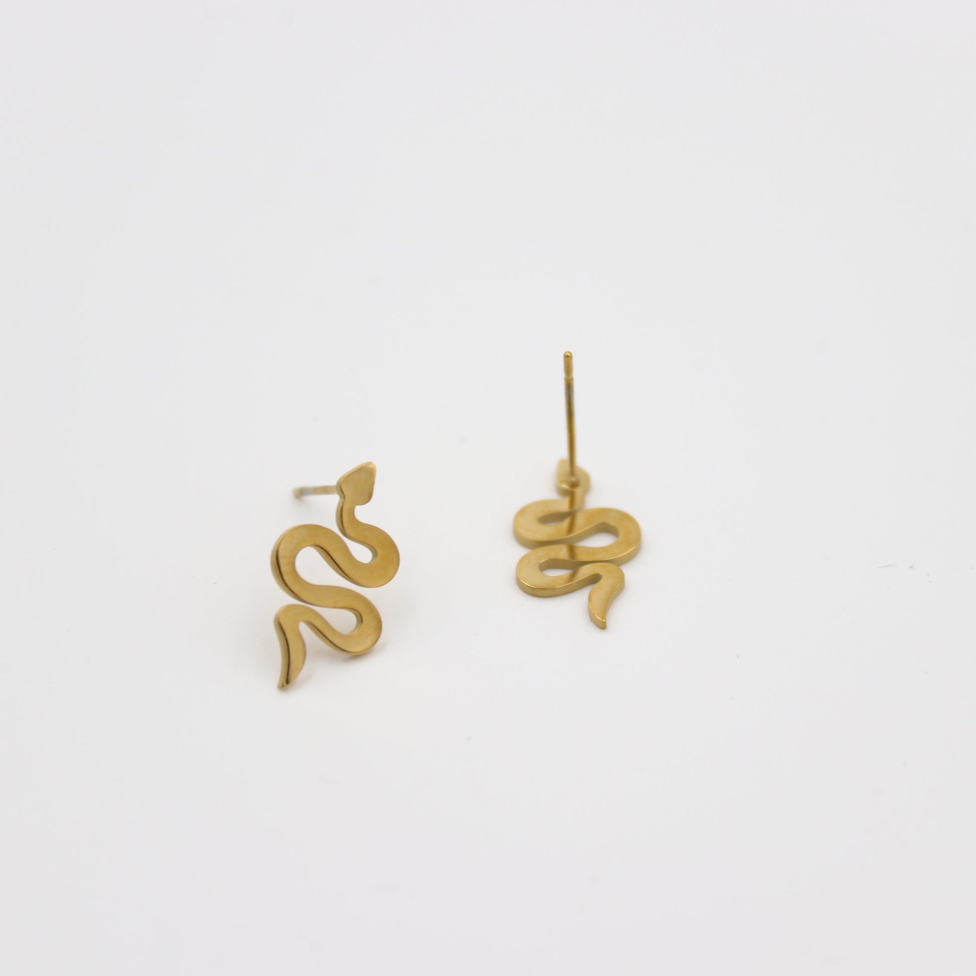 Strike the perfect balance between bold and minimal with these Slithering Snake earrings. Designed for everyday wear with just the right amount of edge, these tiny serpents add a mysterious, elegant touch to any look. Snakes are ancient symbols of transformation, rebirth, and protection. Whether you wear them as a personal totem or a fashion-forward accent, these earrings carry subtle power and timeless style.