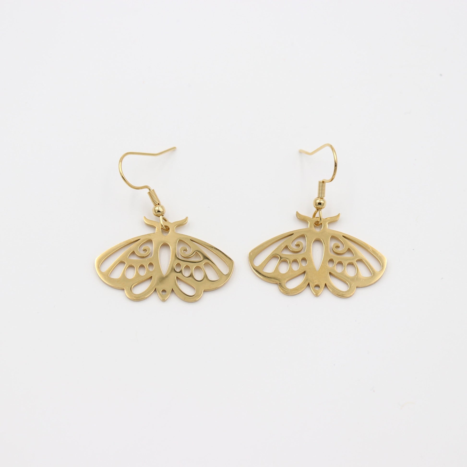 These delicately crafted moth earrings are more than just jewelry—they’re an ode to transformation, mystery, and the quiet beauty of the natural world. Inspired by nocturnal wings and forest whispers, each pair adds an enchanting touch to your look. Moths symbolize intuition, vulnerability, and spiritual growth. Whether you're dressing up for a night out or adding a touch of wild magic to your everyday outfit, these earrings are sure to draw compliments.