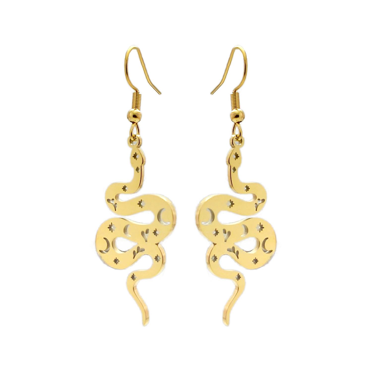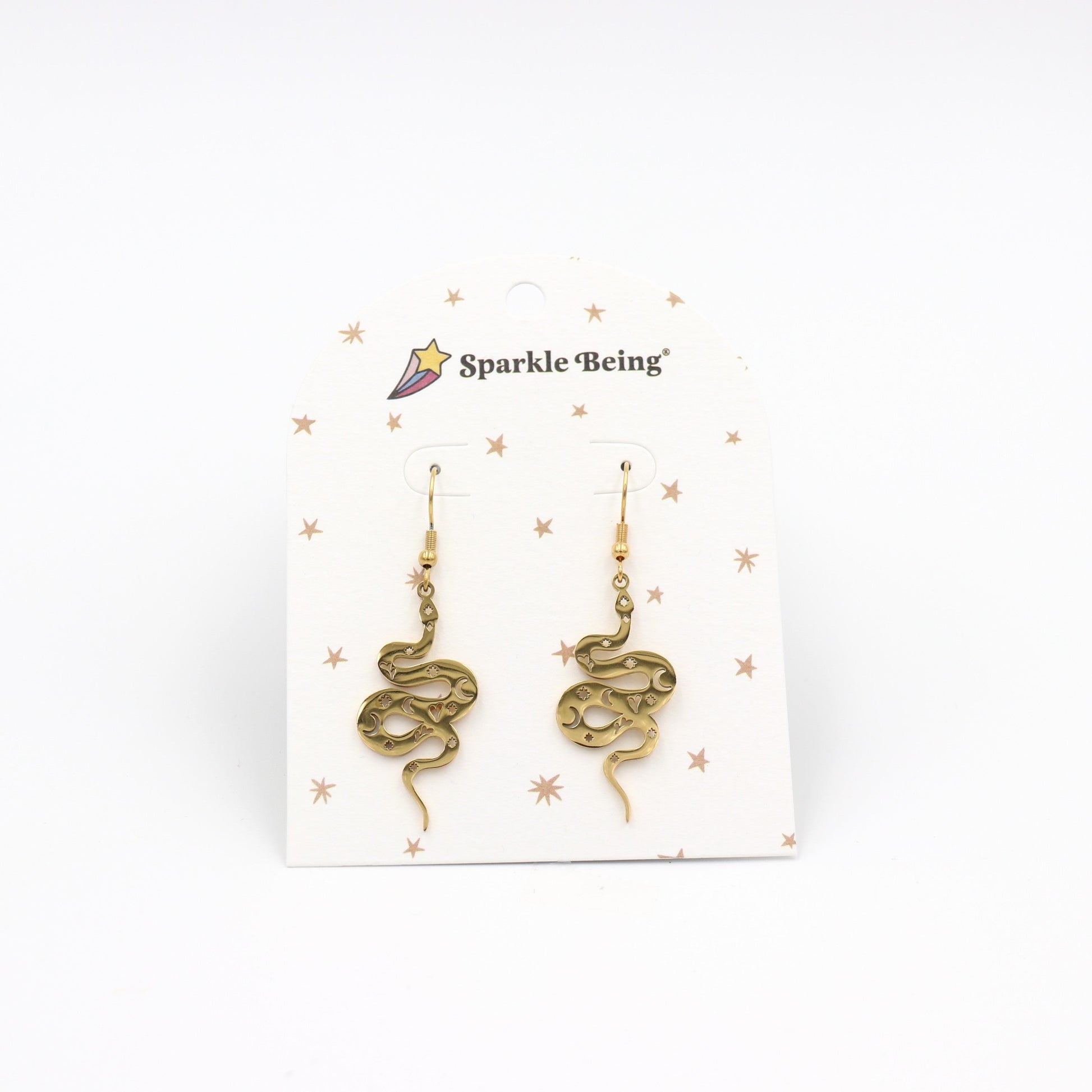 Add some charm to your look with these Starlight Snake earrings — because who says jewelry can’t be dangerously cute? These slinky little serpents wiggle and dance while you strut your stuff, making them the ultimate conversation starter. Perfect for date nights, parties, or casting mysterious glances across the room. Whether you're a certified snake charmer or just like a little mischief in your accessories, these earrings are here to slay.