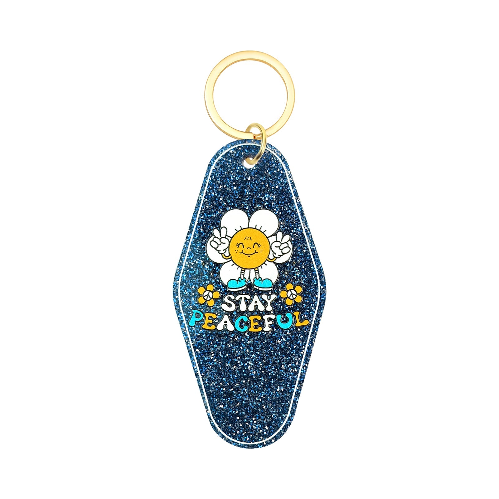 Stay Peaceful Motel Keychain - Vintage Nostalgia Motivational Hotel Keychain