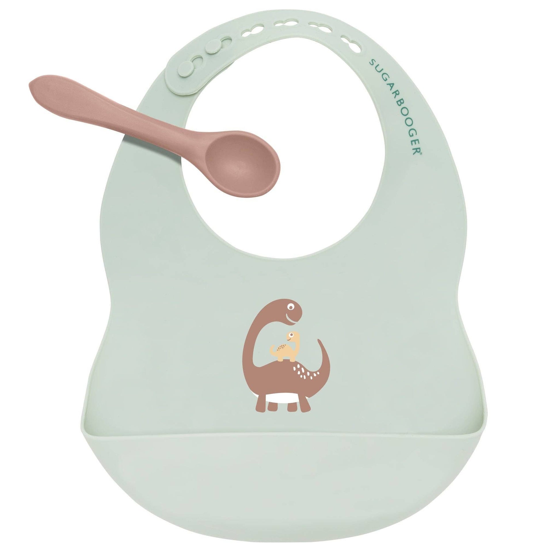 Sugarbooger by Ore’ Originals - Fresh & Messy Silicone Bib & Spoon Set | Baby Dinosaur