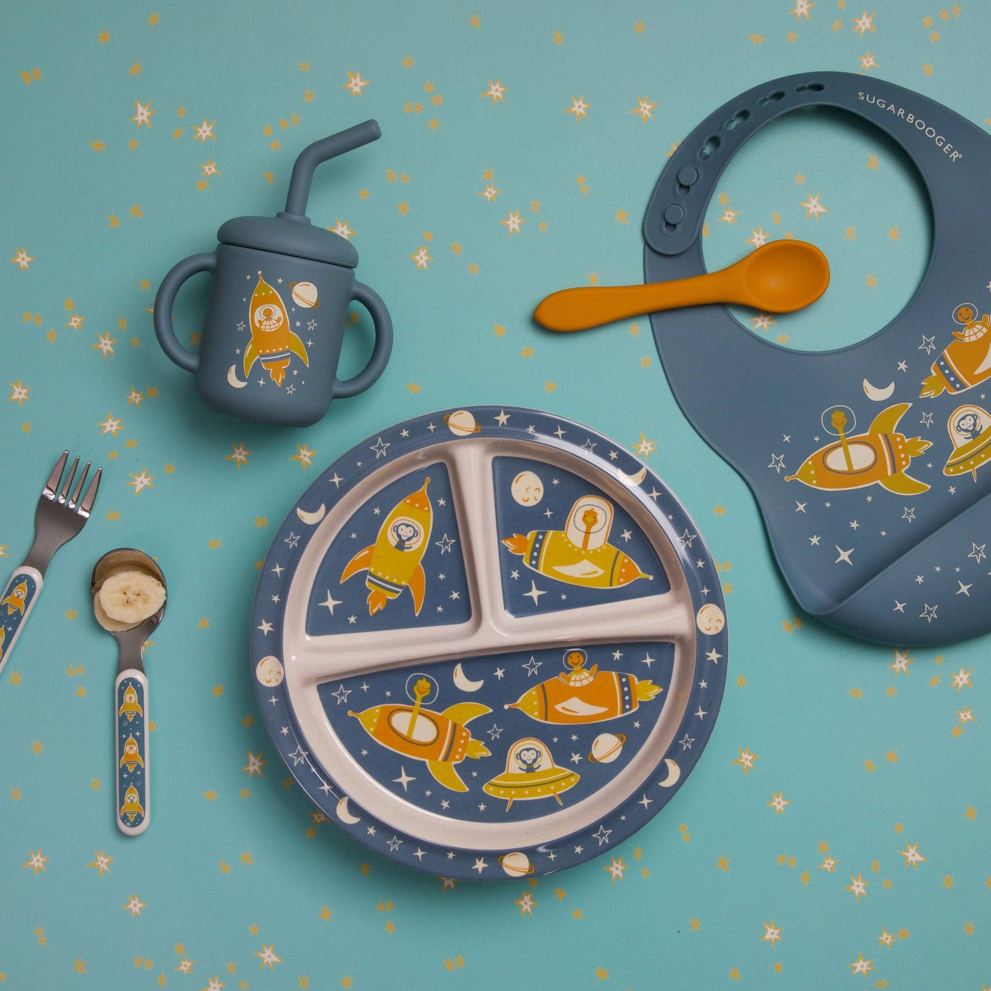 The Zoom! Fresh & Messy Sippy Cup features a critter zooming into space. The brand new 6 ounce silicone sippy includes a removable lid and straw.