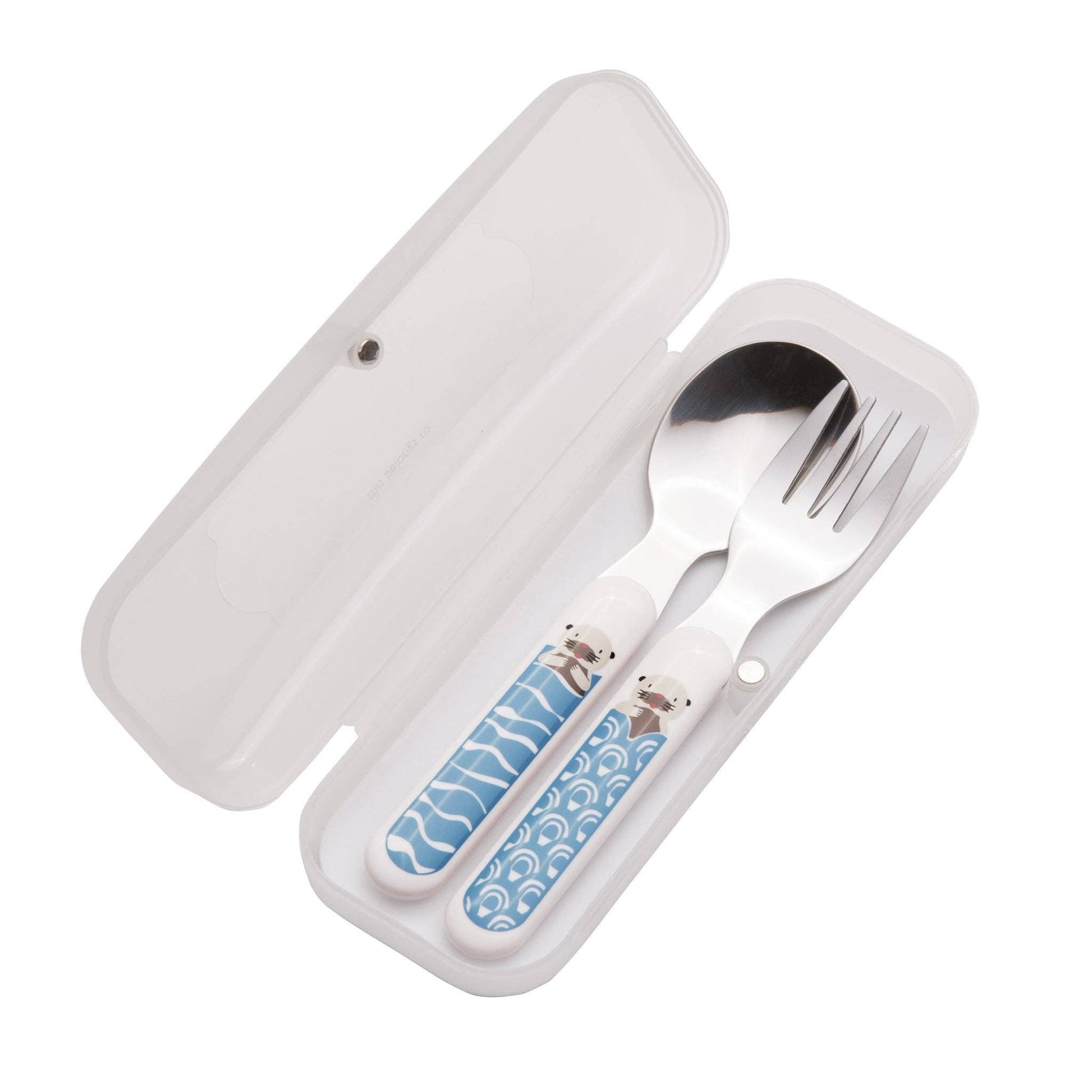 The Baby Otter Silverware Set features playful, cuddly otters frolicking in the ocean. Sized just right for little hands to grip, each set is packaged in a reusable carrying case that's perfect for packed lunches or play dates.