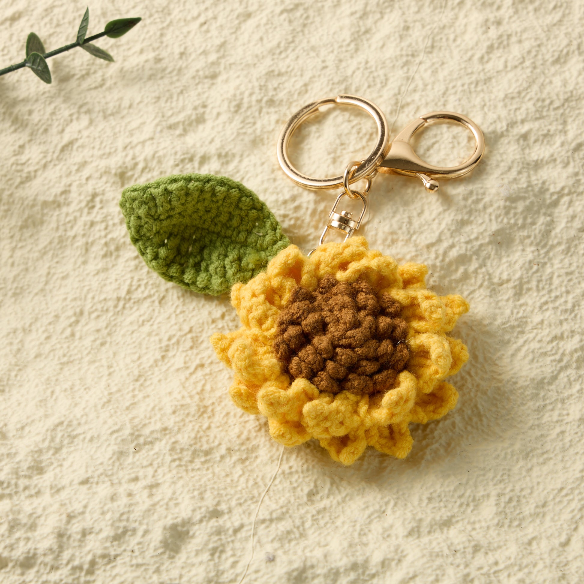 Sunshine Bloom: Hand-Knitted Sunflower Keychain for a Bright Touch