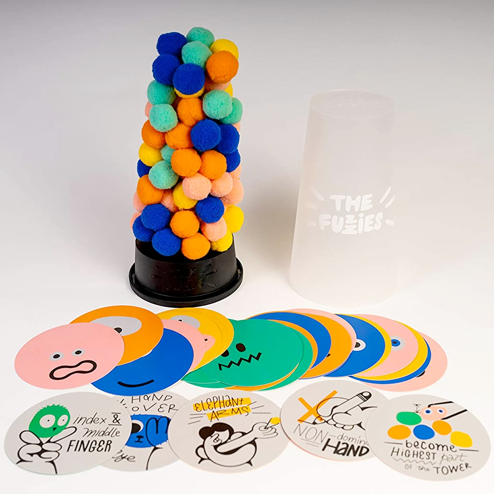 What if Jenga was made up of small fuzzy balls that kind of stick together? Each turn, someone will have to pull off one fuzzy with a set of tweezers. If more fuzzies fall off, you might incur penalties, or straight up lose if you knock off too many! Play till the tower collapses.10 x 5 x 5 inches.Ages 6 and up.2-4 players5-15 min playing timeWhat if Jenga was made up of small fuzzy balls that kind of stick together? Each turn, someone will have to pull off one fuzzy with a set of tweezers. If more fuzzies fall off, you might incur penalties, or straight up lose if you knock off too many! Play till the tower collapses. 10 x 5 x 5 inches. Ages 6 and up. 2-4What if Jenga was made up of small fuzzy balls that kind of stick together? Each turn, someone will have to pull off one fuzzy with a set of tweezers. If more fuzzies fall off, you might incur penalties, or straight up lose if you knock off too many! Play till the tower collapses. 10 x 5 x 5 inches. Ages 6 and up. 2-4