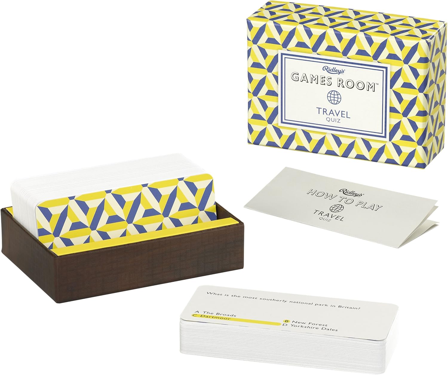 Pack your bags and get ready to travel the world with this ultimate Travel Trivia, including 140 question cards with multiple choice answers. Box includes 140 question cards with multiple choice answers. Presented in a geometric print box. Full instructions included. Size: 3.5" x 5.1" x 2.2".