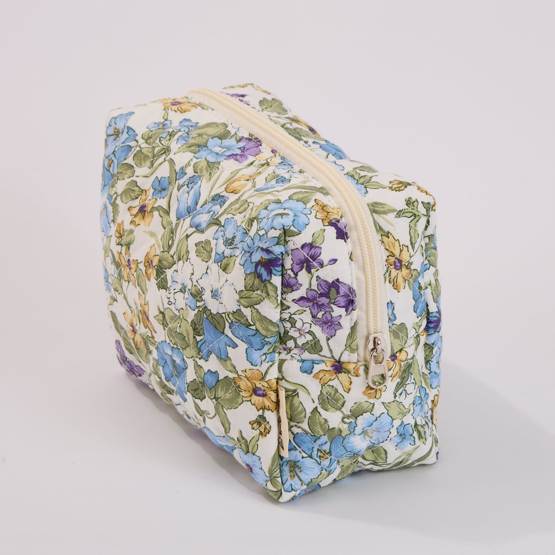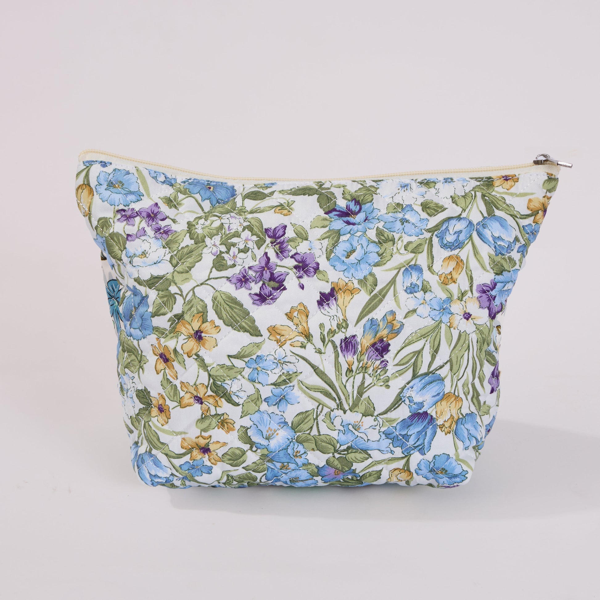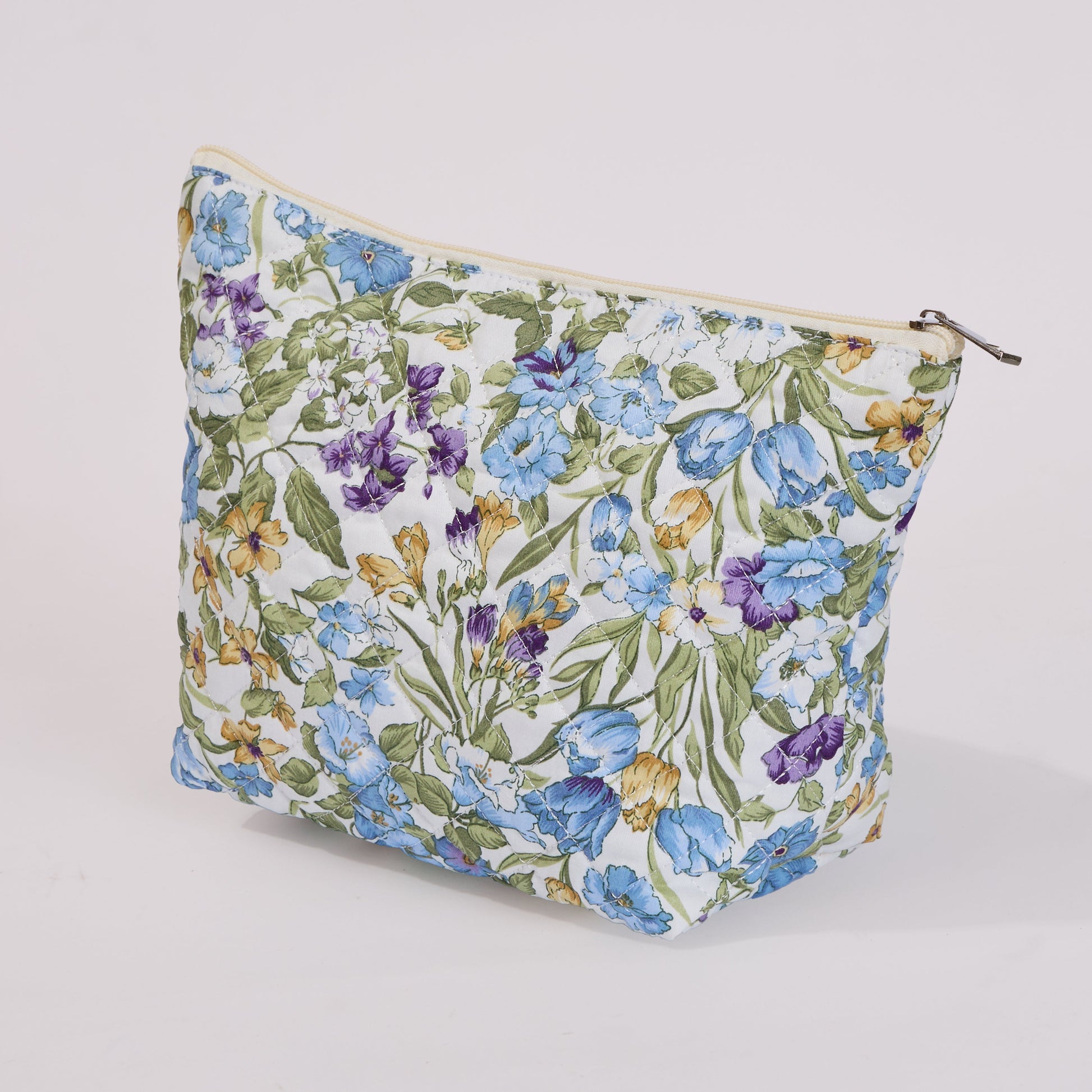 Countryside Wildflowers Quilted Makeup Bag - Small Pouch Travel Toiletry Organizer