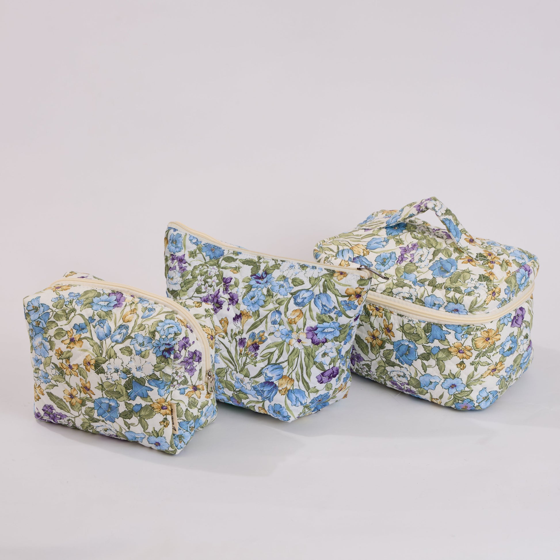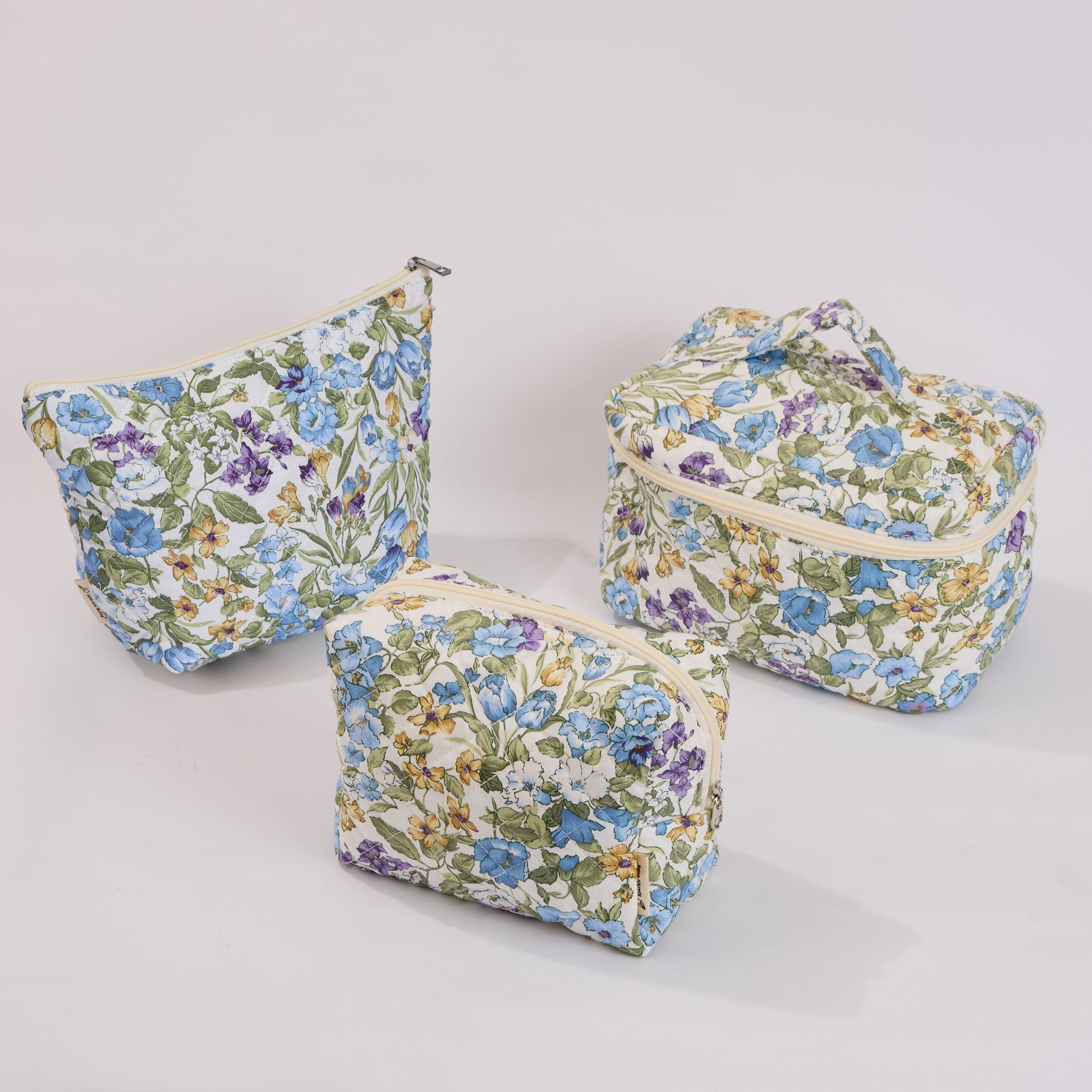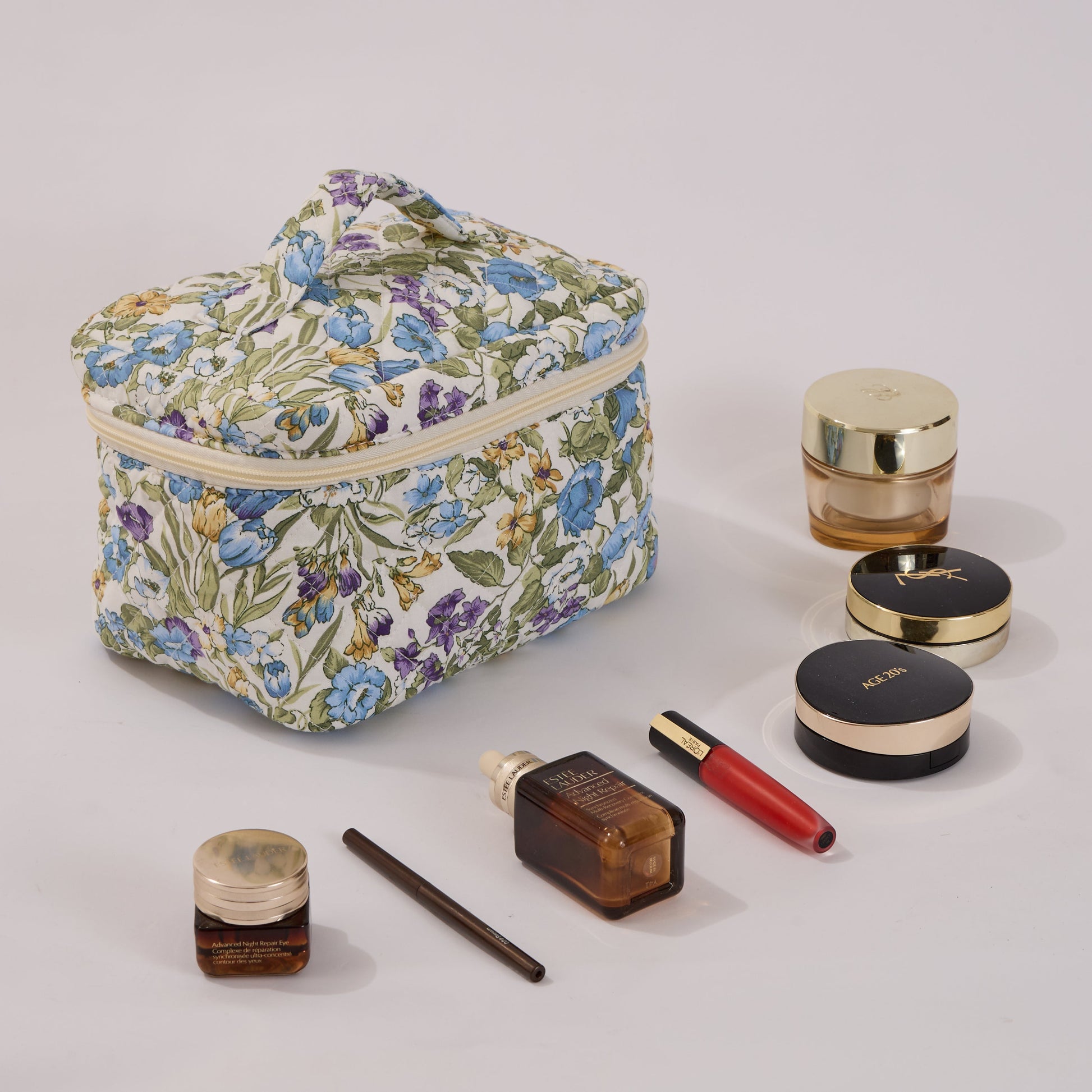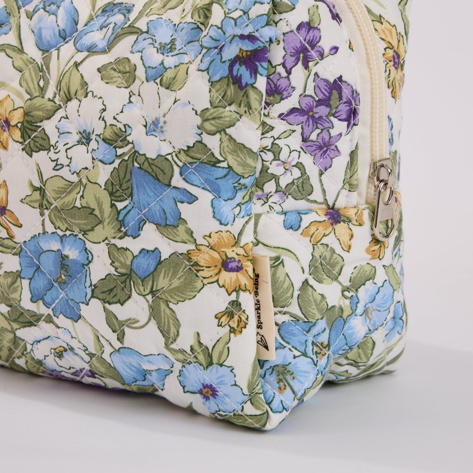 Countryside Wildflowers Quilted Makeup Bag - Small Pouch Travel Toiletry Organizer